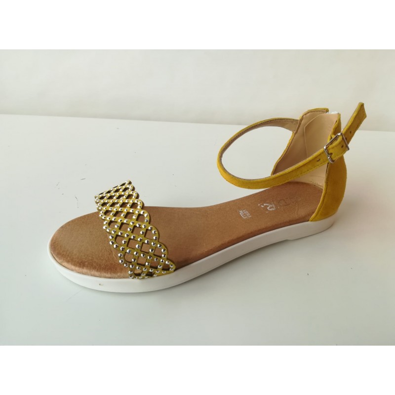 sandalo pelle/camoscio giallo con cerniera